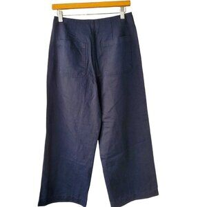 LOFT Wide Leg Cropped Pants Navy Linen Cotton Blend Hand Pockets Womens 2 NWT