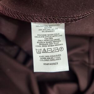 The LOFT Women's Brown Mid Rise Skinny Stretch Riding Pants are versatile and perfect for various occasions such as travel, casual outings, or workwear. Made with a knit fabric of nylon, spandex, and rayon, these pants feature a zip and button closure, a mid rise waist, and a skinny leg style. With a 24.5-inch inseam and a size 8P, these dress pants are easy to care for and lightweight, offering comfort and stretch for everyday wear. The solid brown color and brand name LOFT add a touch of style to these wardrobe essentials.