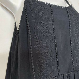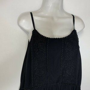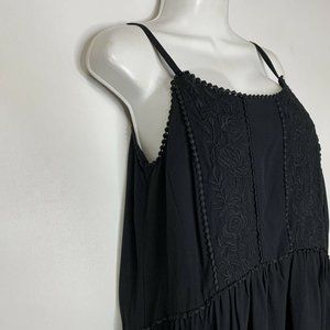 LOFT Women A Line Dress Size XS Black Strappy Pullover Lined Embroidery