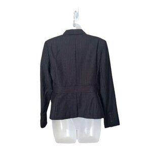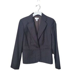 LOFT Womens Blazer Jacket Wool Stripe 1 Button Shoulder Pads Brown 6P