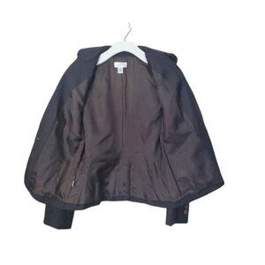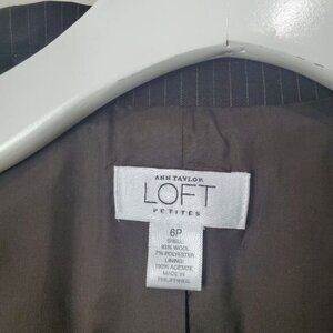 LOFT Women Blazer Jacket SZ 6P Wool Stripe 1 Button Shoulder Pads Brown Academia