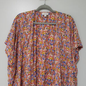 LOFT Women Floral Kimono Medium Large M/L Red Blue Boho Festival Cottagecore Bright Colorful Spring Summer Layering Travel Resortwear Vacation