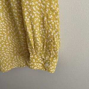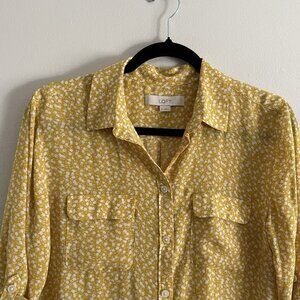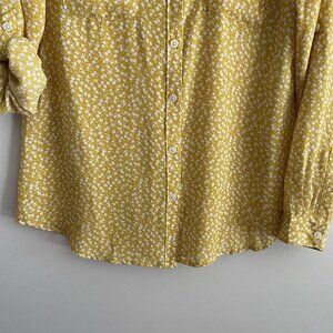 LOFT Women M Yellow Roll Tab Sleeves Button Front Floral Bud Utility Blouse