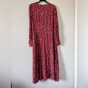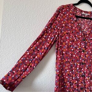 LOFT Women Maxi Dress 10 Burnt Orange Polkadots Front Button Long Sleeve Cottage