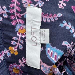 LOFT Women Multicolor Floral Ruffle Neck Pleated Long Sleeves Blouse Size S
