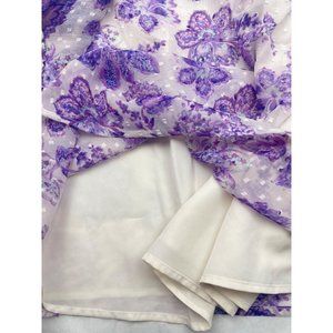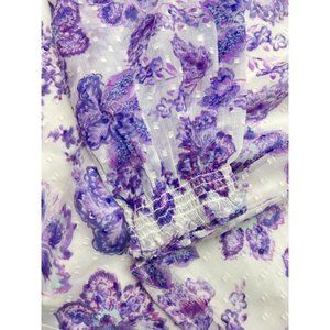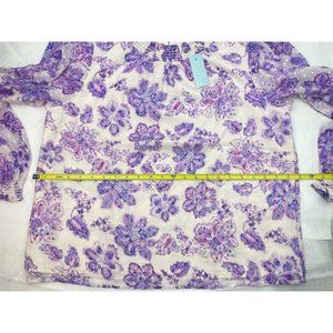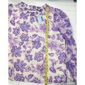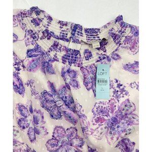 LOFT Women Petite Floral Clip Smocked Puff Sleeve Blouse Large