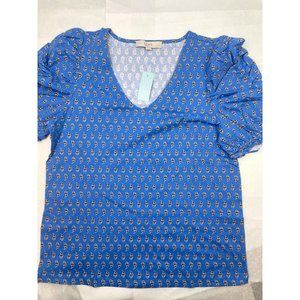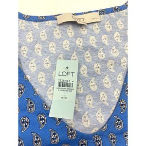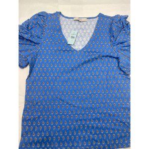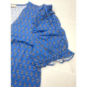 LOFT Women Petite Paisley Ruffle Cinched Sleeve V-Neck Top L