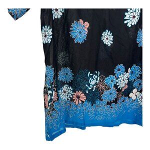 LOFT Women SZ Small Semisheer Floral Black & Blue Long-Sleeve Tunic Top Blouse