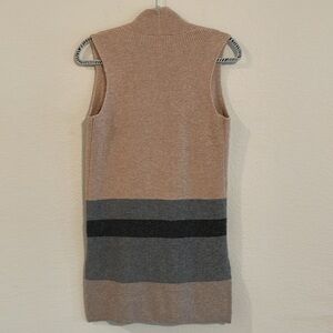 LOFT Women Vest XS Longline Open Front Sweater Tan & Grey Colorblock Preppy