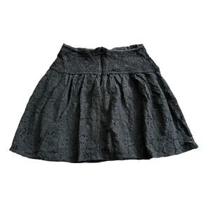 LOFT Womens 10 Black Flounce Fit & Flare Mini Skirt Eyelet Pleated Back Zip