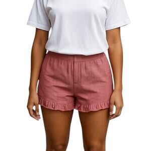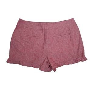 LOFT Women's 4" Linen Blend Ruffle Short in Faded Red Size 6