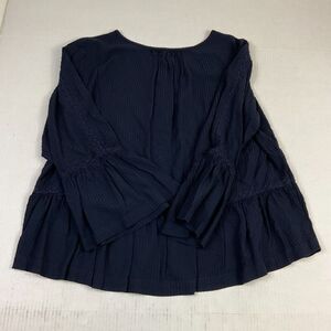 LOFT Womens Babydoll Blouse Blue Flared Long Sleeve Shirt Swiss Dot Top M Medium