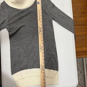 LOFT Women's Black Cream Stripe Tunic Sweater Cowl Turtleneck Size S Petite