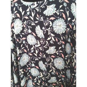 LOFT Women's Black and Floral Open Front Short Sleeve Top Size XSmall