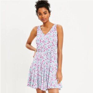 LOFT Womens Bloom Godet Double V Mini Dress Large Floral Sleeveless Stretch Waist Ties - new with tag