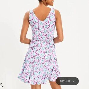 LOFT Womens Bloom Godet Double V Mini Dress Large Floral Sleeveless Stretch