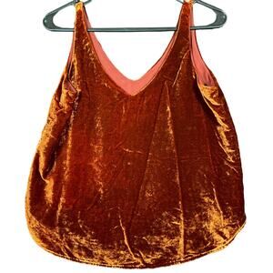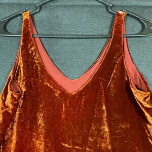 LOFT Womens Blouse Orange Tank Velvet Sleeveless V Neck Lined Stretch XS minor snag on strap (pictured)