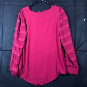 LOFT Womens Blouse Purple Long Sheer Sleeve Round Neck Stretch Small