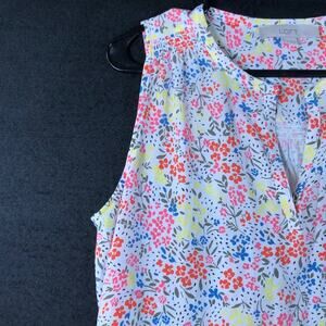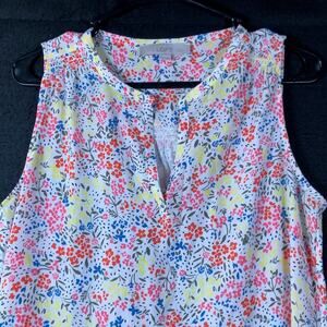 LOFT Womens Blouse White Multicolored Floral V Neck Tank Small