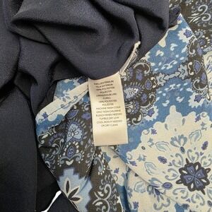 Chic medallion print dress from LOFT, perfect for adding a touch of bohemian flair to your wardrobe. This stylish dress features a flattering 3/4 sleeve design and a comfortable tie waist, allowing you to customize the fit to your liking. The intricate medallion pattern in shades of blue, white, and black creates a visually appealing and versatile look. The dress is fully lined. Ideal for a casual brunch with friends, a day at the office, or a relaxed evening out.