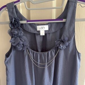Chic blue tank top by LOFT. Features floral embellishments and chain accents. Ideal for casual outings.