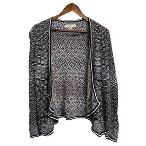 LOFT Womens Blue White Southwestern Print Open Front Cardigan Sweater Small