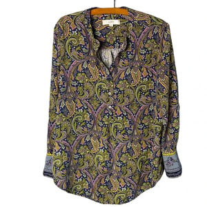 LOFT Women’s Border Paisley Henley Top Size Medium