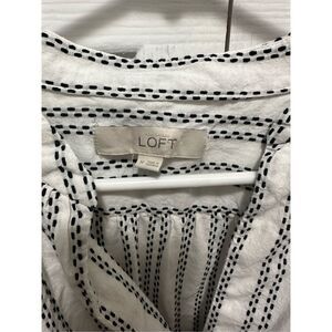 LOFT Womens Button Down Blouse Long Sleeve Distorted Stripes Black White Medium