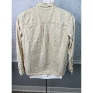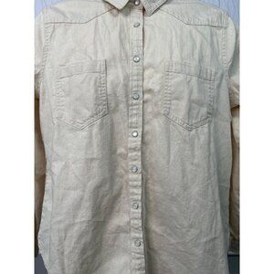 Keywords: LOFT women's shirt medium, beige button down blouse, western yoke shirt, casual work top, neutral long sleeve blouse.
