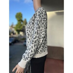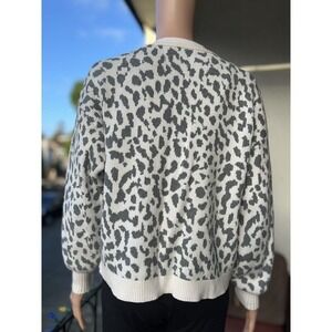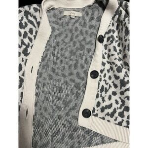 LOFT Women's Button Up Cardigan Sweater Cheetah Print V-Neck Gray Cream Size S