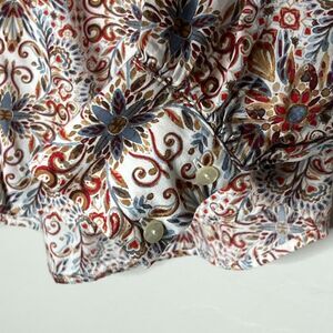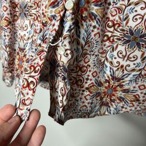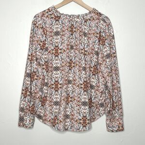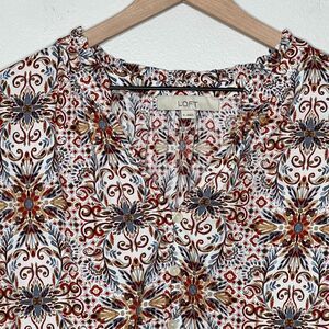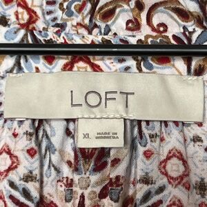 LOFT Womens Button Up Top XL Red Blue Floral Geometric Popover Boho Flowy