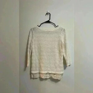 LOFT - Women’s Cream Lightweight Popcorn Knit Layer Lace Top - Size S