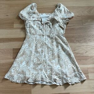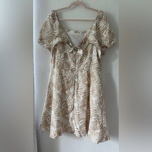 LOFT Womens Cream Linen Viscose Tropical Floral Tie Keyhole Back Dress Size 12