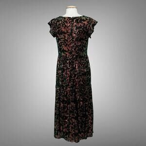 LOFT Womens Dress 8 Black Colorful Sequin Flutter Tiered Midi Whimsical Fairy