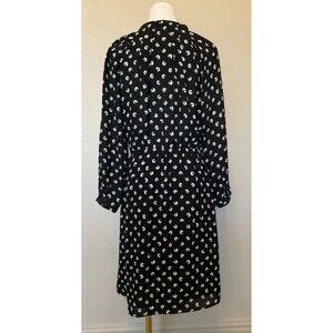 Enhance your wardrobe with this stylish LOFT women's dress, a versatile piece suitable for various occasions, from work to cocktail parties. The elegant black and mint green floral pattern radiates timeless charm, while the tie neck and pleated details add an element of sophistication.