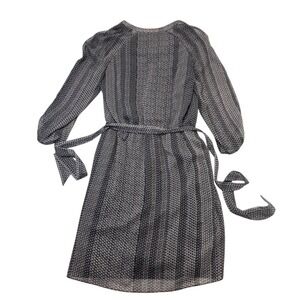 LOFT Women's Dress Size S Gray Black Snake Print Tie Waist Long Sleeve
