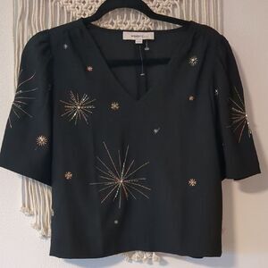 LOFT Women's Embellished V-Neck Top SIZE XXS NWOT