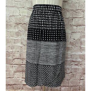 LOFT Womens Faux Wrap Mini Skirt Black White Print Rayon Lightweight Size 14 NEW