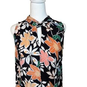 LOFT Women’s Floral Sleeveless Blouse XS Extra Small Keyhole Neck Office Casual