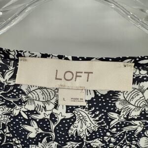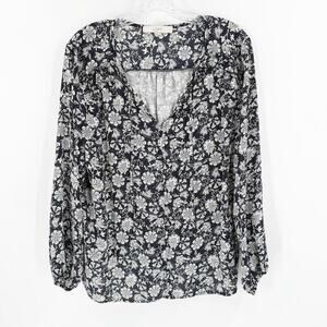 LOFT Womens Floral Tie Neck Ruffle Shoulder Balloon Sleeve Blouse Top Size Large