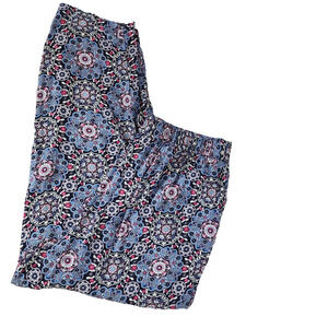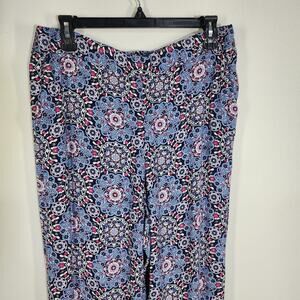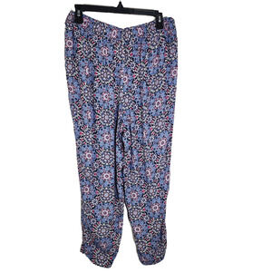 LOFT Women's Fluid Taper Pants Large Medallion Print Pull On Ankle Navy Viscose