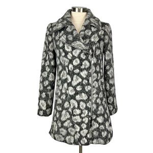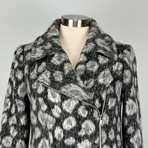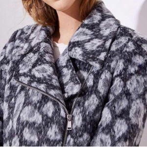 LOFT Womens Gray Leopard Spotted Moto Coat Asymmetric Zip Wool Blend size XS
