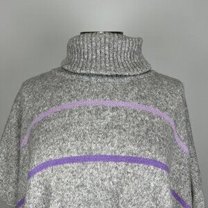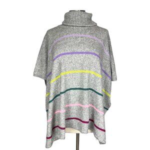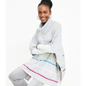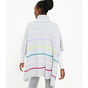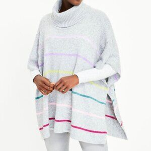 LOFT Womens Gray Striped Turtleneck Poncho Sweater Short Sleeves size XS Small