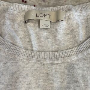 LOFT Womens Gray Sweater Blouse with Blue Green Flower Pattern - Size M