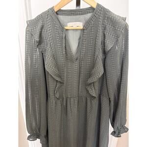 LOFT Women's Green Textured Long Sleeve Ruffle Keyhole Neckline Dress Size M