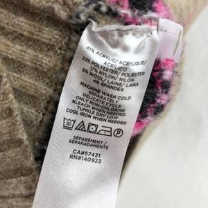 LOFT Womens L Brown Pink Fair Isle Sweater Dress Mock Neck Stretch Long Sleeve