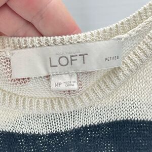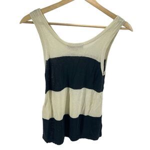LOFT Women's Linen Blend Knit Stripe Tank Top Black and White Medium Petite