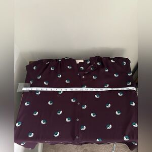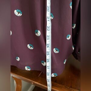 Excellent condition, LOFT Women's Long Sleeve Button Front Semi Sheer Blouse Top Size M. Color purple - 100% polyester, machine wash cold. See pictures for length and armpit to armpit measurements.