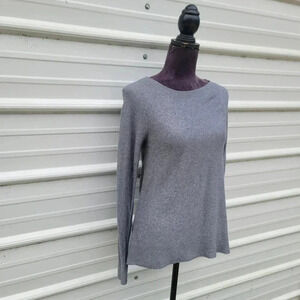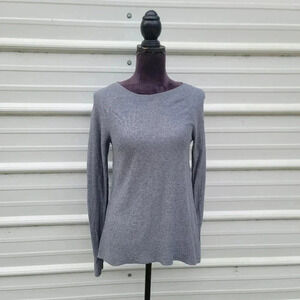 LOFT Women's Long Sleeve Knit Sweater Gray Boat Neck Cotton Nylon Rayon Cozy XS