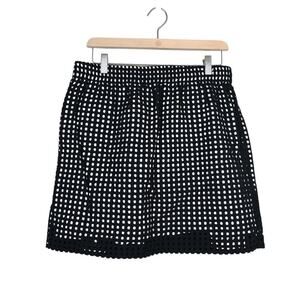 LOFT Womens M Black White Eyelet A-Line Skirt